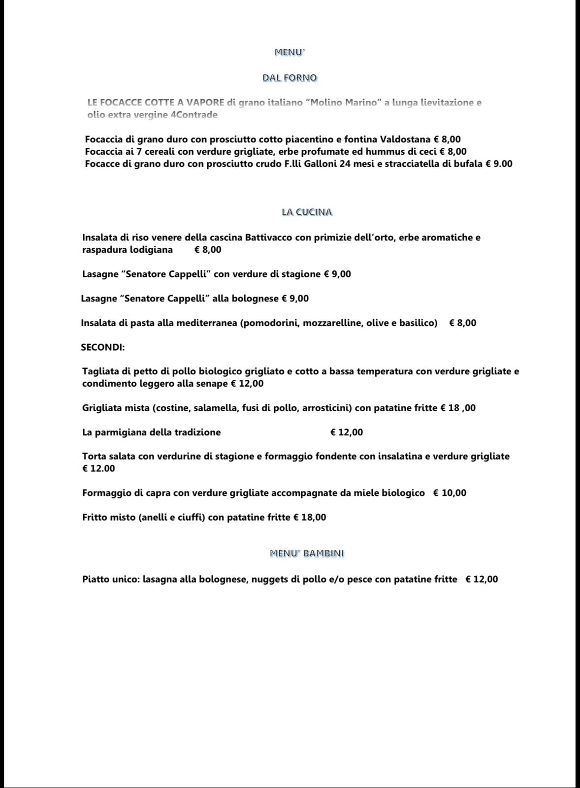 Ogni famiglia potrà scegliere liberamente ciò che desidera mangiare dal menu qui sotto pubblicato: